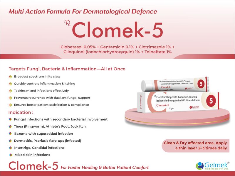 (0.05% w/w) + Gentamicin (0.1% w/w) + Clotrimazole (1% w/w) + Clioquinol