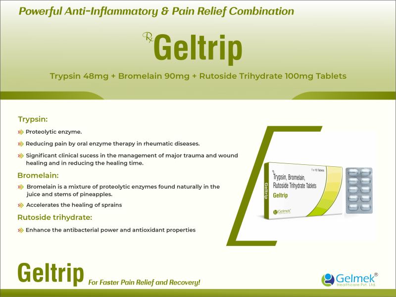 | Composition: | Trypsin 48mg + Bromelain 90mg + Rutoside 100mg |