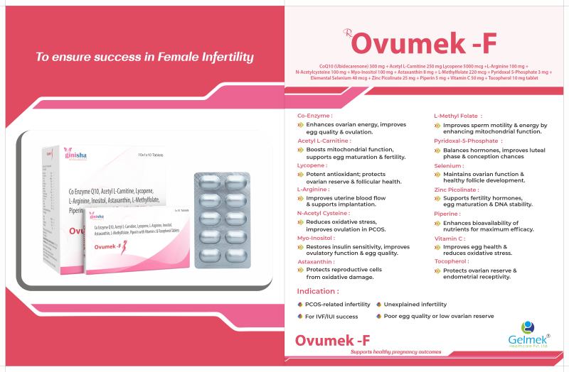 CoQ10 (Ubidecarenone) 300 mg + Acetyl L-Carnitine 250 mg Lycopene 5000 mcg +L-Arginine 100 mg + N-Acetylcysteine 100 mg + Myo-Inositol 100 mg + Astaxanthin 8 mg + L-Methylfolate 220 mcg + Pyridoxal 5-Phosphate 3 mg + Elemental Selenium 40 mcg + Zinc Picolinate 25 mg + Piperin 5 mg + Vitamin C 50 mg + Tocopherol 10mg